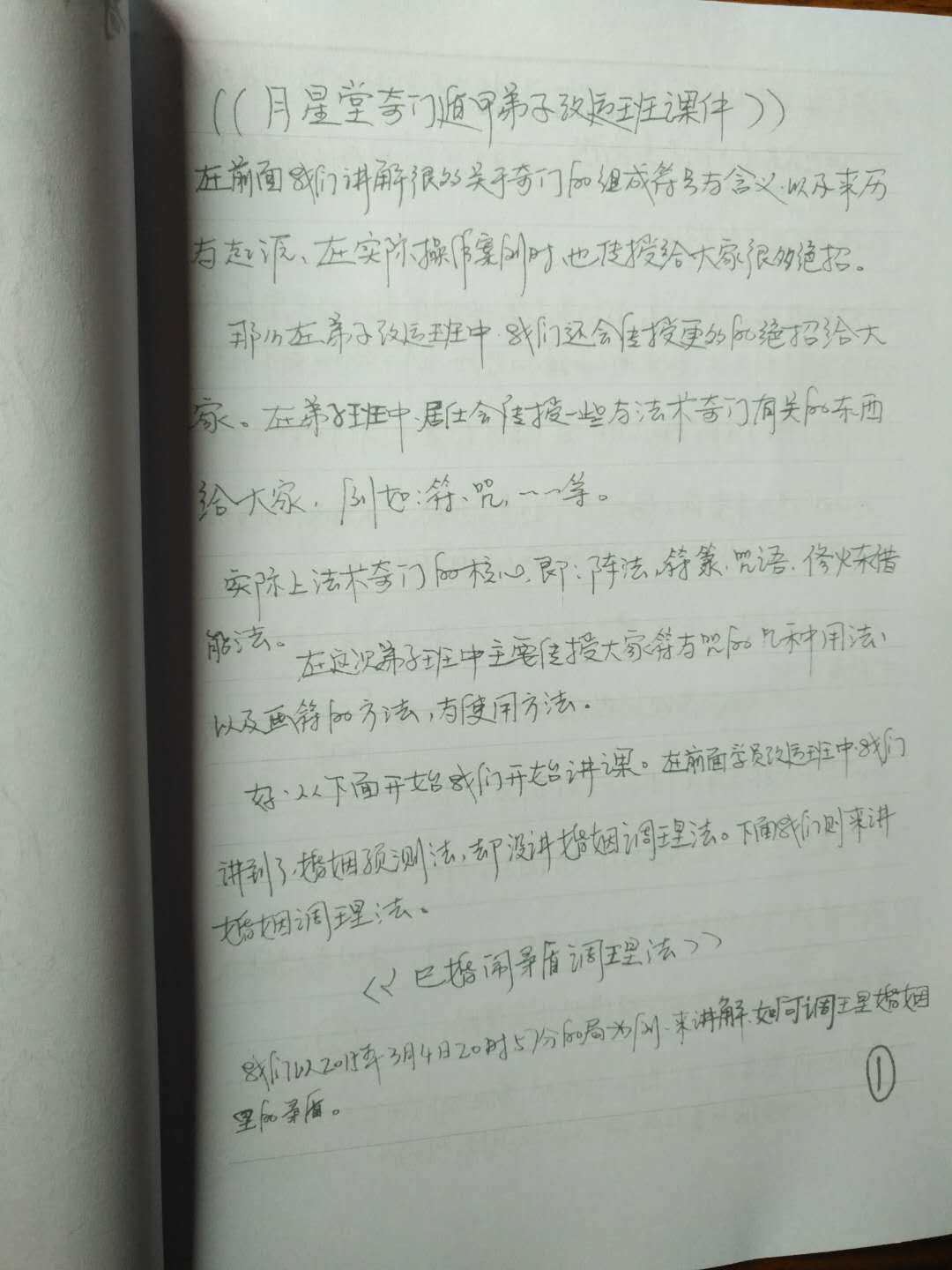 关于月星堂本次法术奇门函授课程传授内容目录